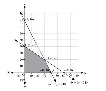 $6 x+3 y \leq 240 \quad \ldots$ (3)