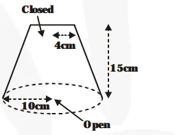 A fez, the cap used by the Turks, is shaped like the frustum of a cone (see fig.). If its radius on the open side is 10 cm, radius at the upper base is 4 cm and its slant height is 15 cm, find the area of material used for making it.