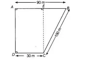 A field is in the shape of a trapezium having parallel sides 90 m and 30 m. These sides meet the third side at right angles. The length of the fourth side