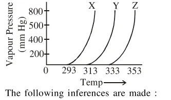 Order of vapour pressure $: \mathrm{Z}<\mathrm{Y}<\mathrm{X}$