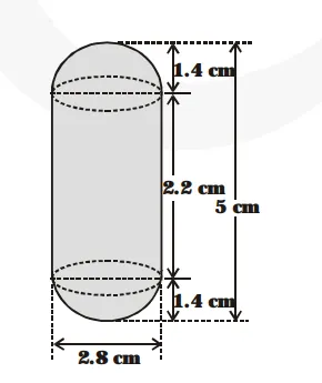 Now, volume of the cylindrical part $=\pi \mathrm{r}^{2} \mathrm{~h}$ and volume of both the hemispherical ends