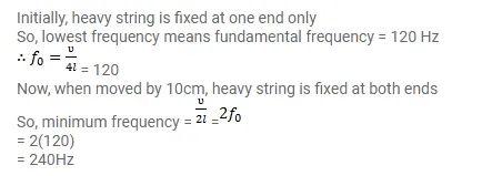 pulley and supports a weight to produce a tension. The lowest frequency with which the heavy string resonates is $120 \mathrm{~Hz}$. If the movable
