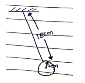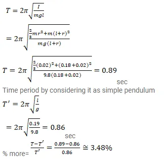 A hollow sphere of radius $2 \mathrm{~cm}$ is attached to an $18 \mathrm{~cm}$ long thread to make a pendulum. Find the time period of oscillation of this pendulum. How does it differ from the time period calculated using the formula for a simple pendulum?