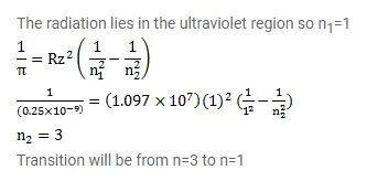 A hydrogen atom emits ultraviolet radiation of wavelength $102.5 \mathrm{~nm}$. What are the quantum numbers of the states involved in the transition?