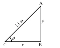When $x=12, y=\sqrt{169-144}=5 \mathrm{~m}$