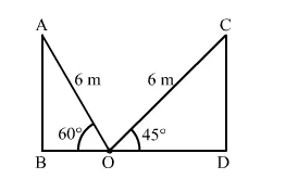 $\mathrm{AO}=\mathrm{CO}=6 \mathrm{~m}, \angle \mathrm{AOB}=60^{\circ}$ and $\angle \mathrm{COD}=45^{\circ}$