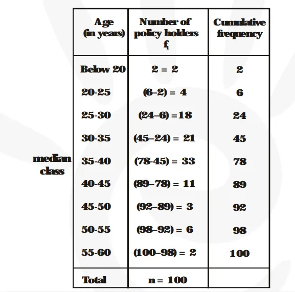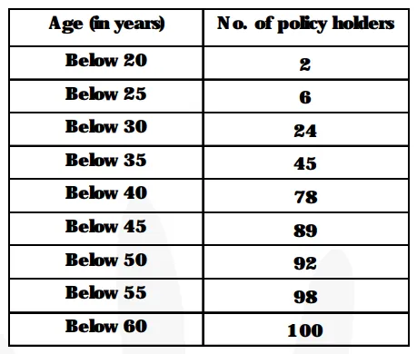 A life insurance agent found the following data for distribution of ages of 100 policy holders. Calculate the median age, if policies are only given to persons having age 18 years onwards but less than 60 year.