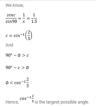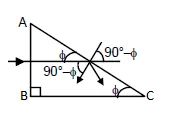 A light ray is incident normally on the face AB of a right angled prism $\mathrm{ABC}(\mu=1.50)$ as shown in fig. What is the largest angle $\phi$ for which the light ray is totally reflected at the surface AC?