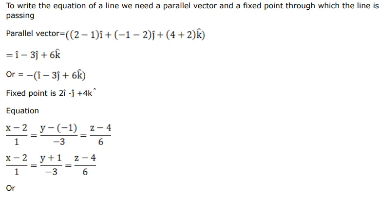 A line passes through the points $A(2,-1,4)$ and $B(1,2,-2)$. The equations of the line $A B$ are
