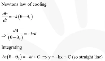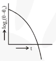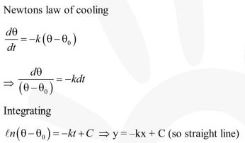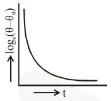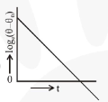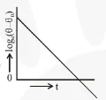 A liquid in a beaker has temperature $\theta(t)$ at time $t$ and $\theta_{0}$ is temperature of surroundings, then according to Newton's law of cooling the correct graph between $\log _{e}\left(\theta-\theta_{0}\right)$ and $t$ is :-