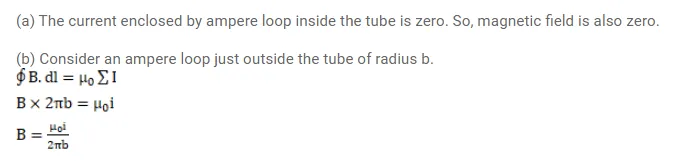 A long, cylindrical tube of inner and outer radii a and b carries a current i distributed uniformly over its cross-section. Find the magnitude of the magnetic field at a point