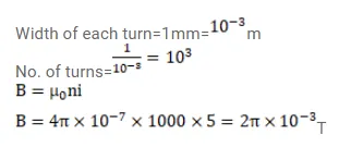 A long solenoid is fabricated by closely winding a wire of radius $0.5 \mathrm{~mm}$ over a cylindrical nonmagnetic frame so that the successive turns nearly touch each other. What would be the magnetic field $B$ at the center of the solenoid if it carries a current of $5 \mathrm{~A}$ ?