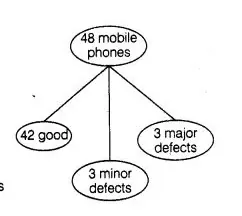 A lot consists of 48 mobile phones of which 42 are good, 3 have only minor defects and 3 have major defects. Varnika will buy a phone, if it is good