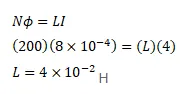 A magnetic flux of $8 \times 10^{-4}$ weber is linked with each other of a 200 turn coil when there is an electric current of $4 \mathrm{~A}$ in it. Calculate the self-inductance of the coil.
