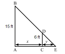 Let AB be the lamp post. Suppose at any time t, the man CD be at a distance of x km from the lamp post and y ft be the length of his shadow CE.