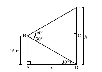$\Rightarrow x=16 \sqrt{3}=27.68 \mathrm{~m}$