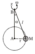 A mass $M$ hangs on a massless rod of length $l$ which rotates at a constant angular frequency. The mass $M$ moves with steady speed in a circular path of constant radius. Assume that the system is in steady circular motion with constant angular velocity $\omega$. The angular momentum of $M$ about point $A$ is $L_{A}$ which lies in the positive $z$ direction and the angular momentum of $M$ about $B$ is $L_{B}$. The correct statement for this system is :