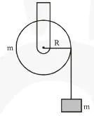 Question: A mass ' $m$ ' is supported by a massless string wound around a uniform hollow cylinder of mass $m$ and radius $R$. If the string does not slip on the cylinder, with what acceleration will the mass fall on release?