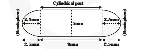 A medicine capsule is in the shape of a cylinder with two hemispheres struck to each of its ends (see figure). The length of the entire capsule is 14 mm and the diameter of the capsule is 5 mm. Find its surface area.