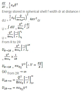 (b) Show that the electrostatic field energy stored outside the sphere of radius $2 \mathrm{R}$ equals that stored within it.