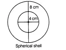 and external radius of shell, $r_{2}=\frac{8}{2}=4 \mathrm{~cm}$ $[\because$ diameter $=2 \times$ radius $]$