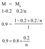 A molecule $M$ associates in a given solvent according to the equation $M \rightleftharpoons(M)_{n}$. For a certain concentration of M, the van't Hoff factor was found to be $0.9$ and the fraction of associated molecules was $0.2$. The value of $\mathrm{n}$ is :