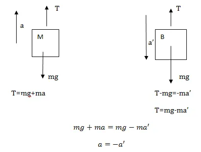 A monkey is climbing on a rope that goes over a smooth light pulley and supports a block of equal mass at the other end. Show that whatever forces the monkey exerts on the rope, the monkey and the block move in the same direction with equal acceleration. If initially both were at rest, their separation will not change as time passes.