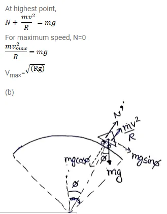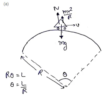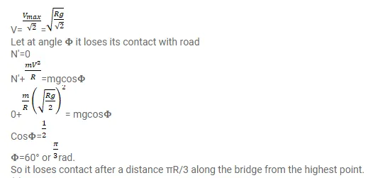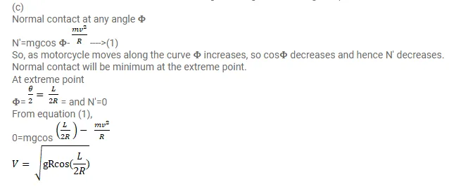 A motorcycle has to move with a constant speed on an overbridge which is in the form of a circular arc of radius $\mathrm{R}$ and has a total length L. Suppose the motorcycle starts from the highest point. (a) What can its maximum velocity be for which the contact with the road is not broken at the highest point? (b) If the motorcycle goes at speed $1 / 42$ times the maximum found in part (a), where will it lose the contact with the road? (c) What maximum uniform speed can it maintain on the bridge if it does not lose contact anywhere on the bridge?