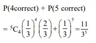 Question: A multiple choice examination has 5 questions. Each question has three alternative answers of which exactly one is correct. The probability that a student will get 4 or more correct answers just by guessing is :