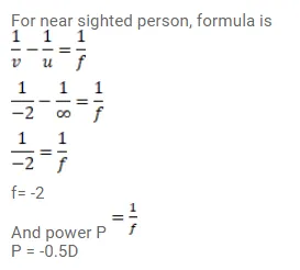 A nearsighted person cannot clearly see beyond $200 \mathrm{~cm}$. Find the power of the lens needed to see objects at large distance?