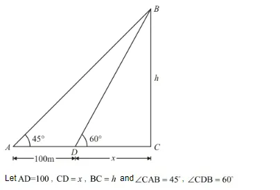 $\Rightarrow h=\frac{100 \sqrt{3}}{\sqrt{3}-1}$