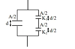 $=\frac{\mathrm{A} \varepsilon_{0}}{\mathrm{~d}}\left(\frac{1}{2}+\frac{\mathrm{K}_{1} \mathrm{~K}_{2}}{\mathrm{~K}_{1}+\mathrm{K}_{2}}\right)$