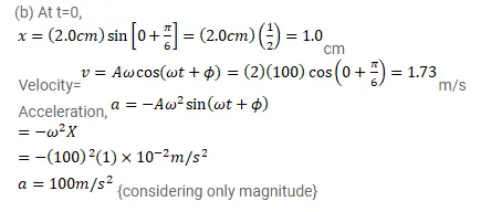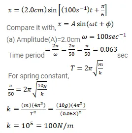 A particle having mass $10 \mathrm{~g}$ oscillates according to the equation $x=(2.0 \mathrm{~cm}) \sin \left[\left(100 \mathrm{~s}^{-1}\right) t+\frac{\pi}{6}\right]$.