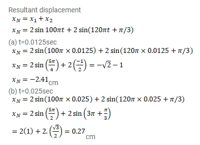 A particle is subjected to two simple harmonic motions given by $x_{1}=2.0 \sin (100 \pi t)$ and $x_{2}=2.0 \sin (120 \pi t+\pi / 3)$