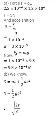 A particle of mass $1 \mathrm{~g}$ and charge $2.5^{\times 10^{-4}} \mathrm{C}$ is released from rest in an electric field of $1.2^{\times 10^{-4}} \mathrm{~N} / \mathrm{C}$.