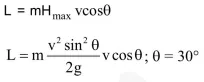 A particle of mass ' $m$ ' is projected with a velocity $\mathrm{v}$ making an angle of $30^{\circ}$ with the horizontal. The magnitude of angular momentum of the projectile about the point of projection when the particle is at its maximum height ' $h$ ' is :-
