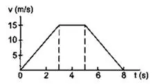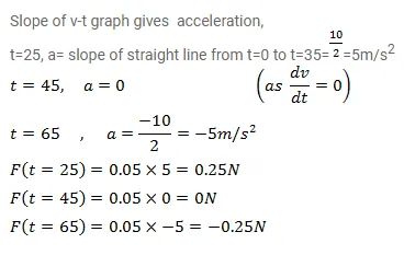 A particle of mass $50 \mathrm{~g}$ moves on a straight line. The variation of speed with time is shown in figure. Find the force acting on the particle at $t=2,4$ and 6 seconds.