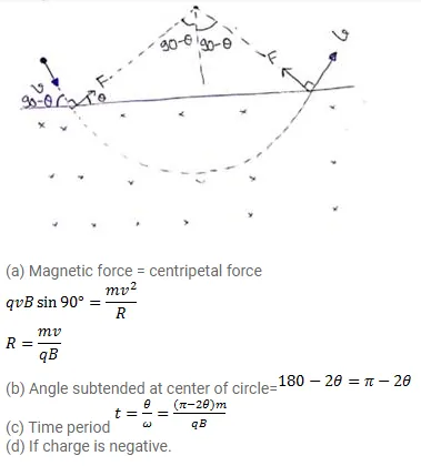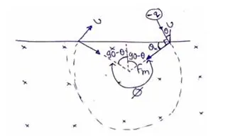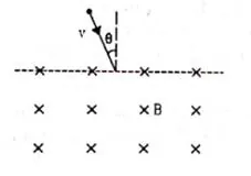 A particle of mass $m$ and positive charge $q$, moving with a uniform velocity $v$, enters a magnetic field $B$ as shown in figure.
