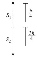 $s_{2}=h-\frac{h}{4}=\frac{3 h}{4}$
