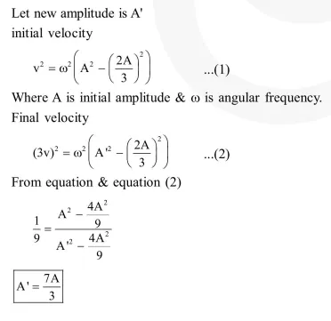 A particle performs simple harmonic motion with amplitude A. Its speed is trebled at the instant that it is at a distance $\frac{2 \mathrm{~A}}{3}$ from equilibrium position. The new amplitude of the motion is :-