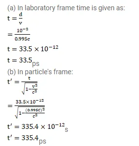 A particular particle created in a nuclear reactor leaves a $1 \mathrm{~cm}$ track before decaying. Assuming that the particle moved at $0.995 \mathrm{c}$, calculate the life of the particle (a) in the lab frame and (b) in the frame of the particle.