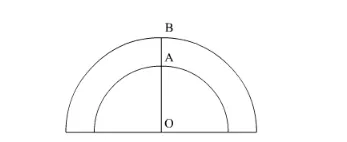 We have given $\mathrm{AB}=4 \mathrm{~m}$ and circumference of semicircle with radius $\mathrm{OA}$ as $163 \frac{3}{7} \mathrm{~m}$.