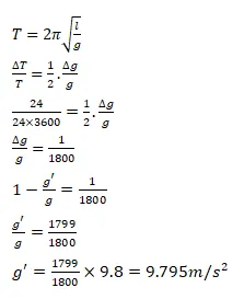 A pendulum clock giving correct time at a place where $g=9.800 \mathrm{~m} / \mathrm{s}^{2}$ is taken to another place where it loses 24 seconds during 24 hours. Find the value of $g$ at this new place.