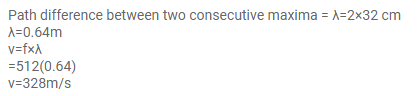 A piston is fitted in a cylindrical tube of small cross section with the other end of the tube open. The tube resonates with a tuning fork of frequency $512 \mathrm{~Hz}$. The piston is gradually pulled out of the tube and it is found that a second resonance occurs when the piston is pulled out through a distance of $32.0 \mathrm{~cm}$. Calculate the speed of sound in the air of the tube.