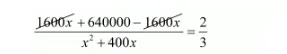 $\frac{\{1600(x+400)-1600 x\}}{x(x+400)}=\frac{2}{3}$