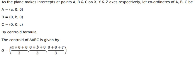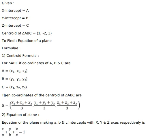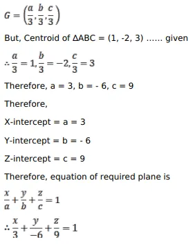 A plane meets the coordinate axes at $\mathrm{A}, \mathrm{B}$ and $\mathrm{C}$ respectively such that the centroid of $\triangle \mathrm{ABC}$ is $(1,-2,3)$. Find the equation of the plane.