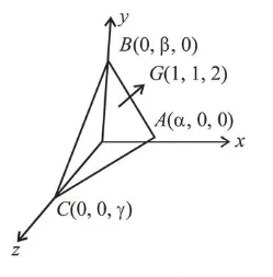 $\therefore \alpha=3, \beta=3$ and $\gamma=6$ as $\mathrm{G}$ is centroid.