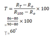 A platinum resistance thermometer reads $0^{\circ}$ when its resistance is $80 \Omega$ and $100^{\circ}$ when its resistance is $90 \Omega$. Find the temperature at the platinum scale at which the resistance is $86 \Omega .$