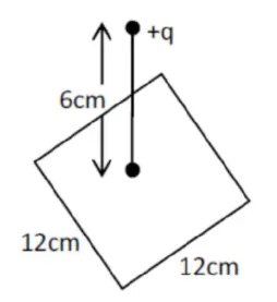 A point charge of $+12 \mu \mathrm{C}$ is at a distance $6 \mathrm{~cm}$ vertically above the centre of a square