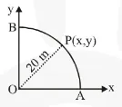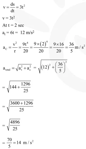 A point $P$ moves in counter clockwise direction on a circular path as shown in the figure. The movement of ' $\mathrm{P}^{\prime}$ is such that it sweeps out a length $\mathrm{s}=\mathrm{t}^{3}+5$, where $\mathrm{s}$ is in metres and $\mathrm{t}$ is in seconds. The radius of the path is $20 \mathrm{~m}$. The acceleration of ' $P^{\prime}$ when $t=2 \mathrm{~s}$ is nearly :